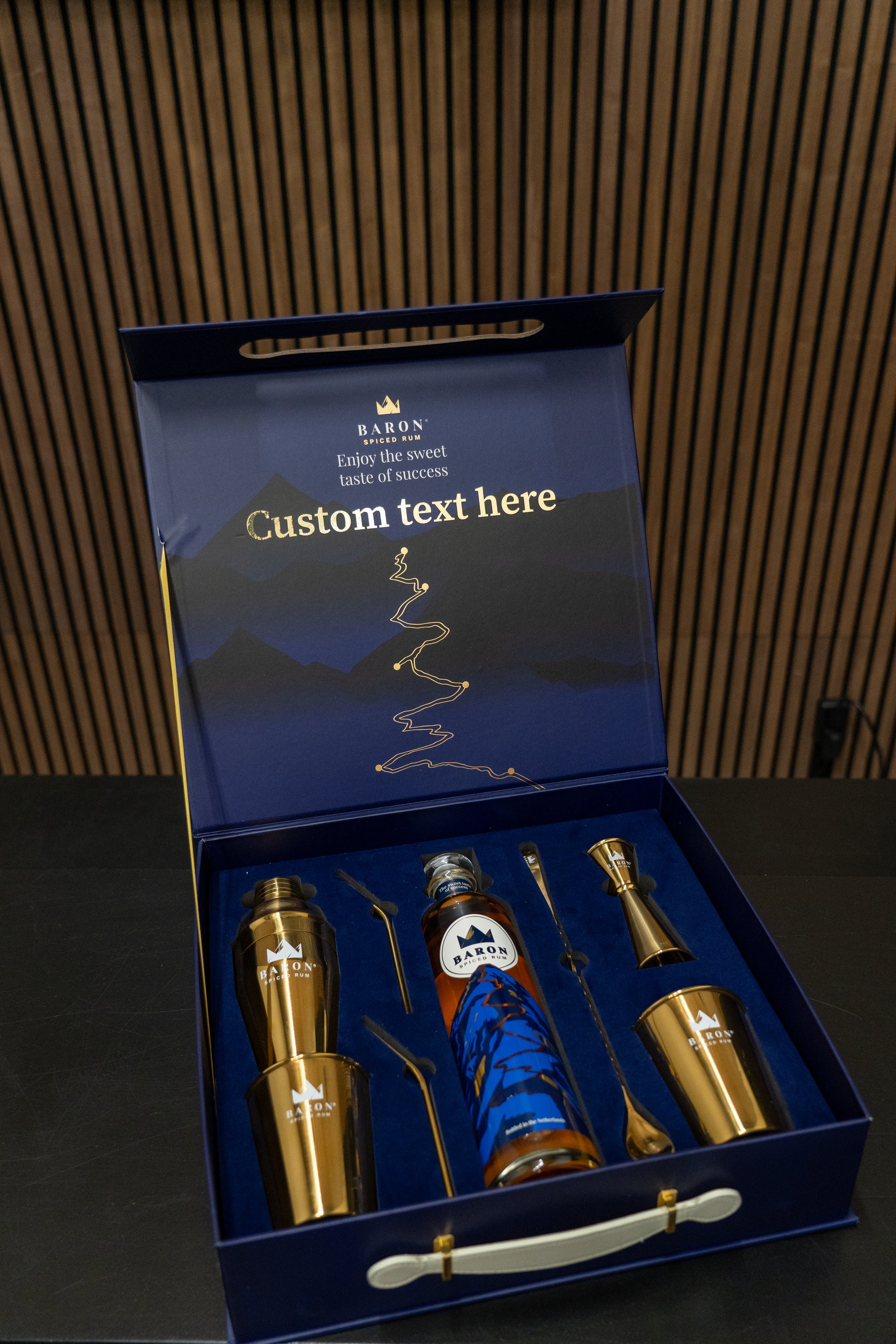 Maak van iedere gelegenheid een feestje met Baron Spiced Rum! Dit kerstpakket is het ideale cadeau voor vrienden, familie, zakenrelaties of jezelf.